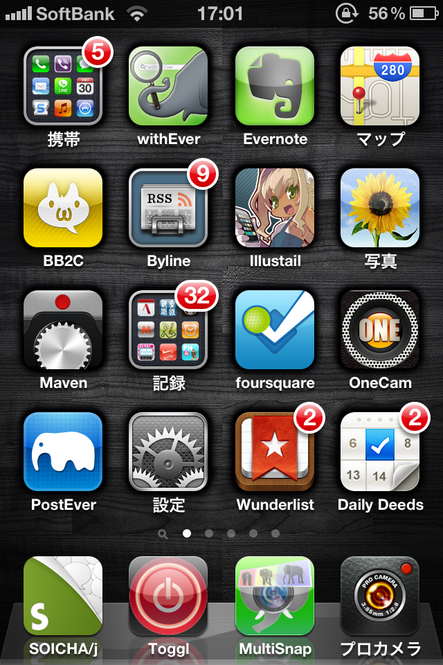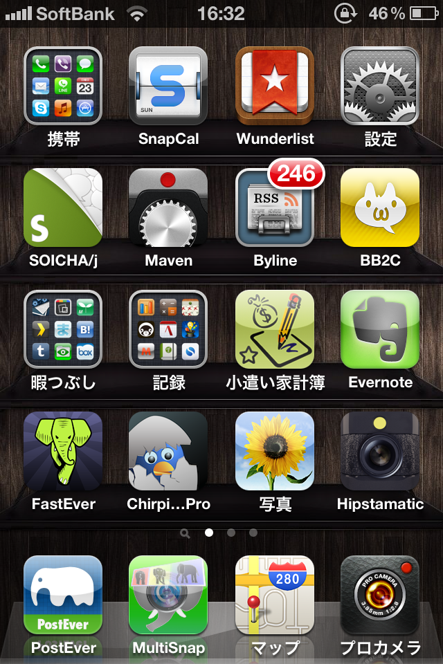 いろいろと多機能で無料なSOICHAがついにドック入り。chirpieやぽすとんもよかったけど、やっぱり投稿だけじゃなくTL読みたいし、そもそもこのアプリ起動早いしね。