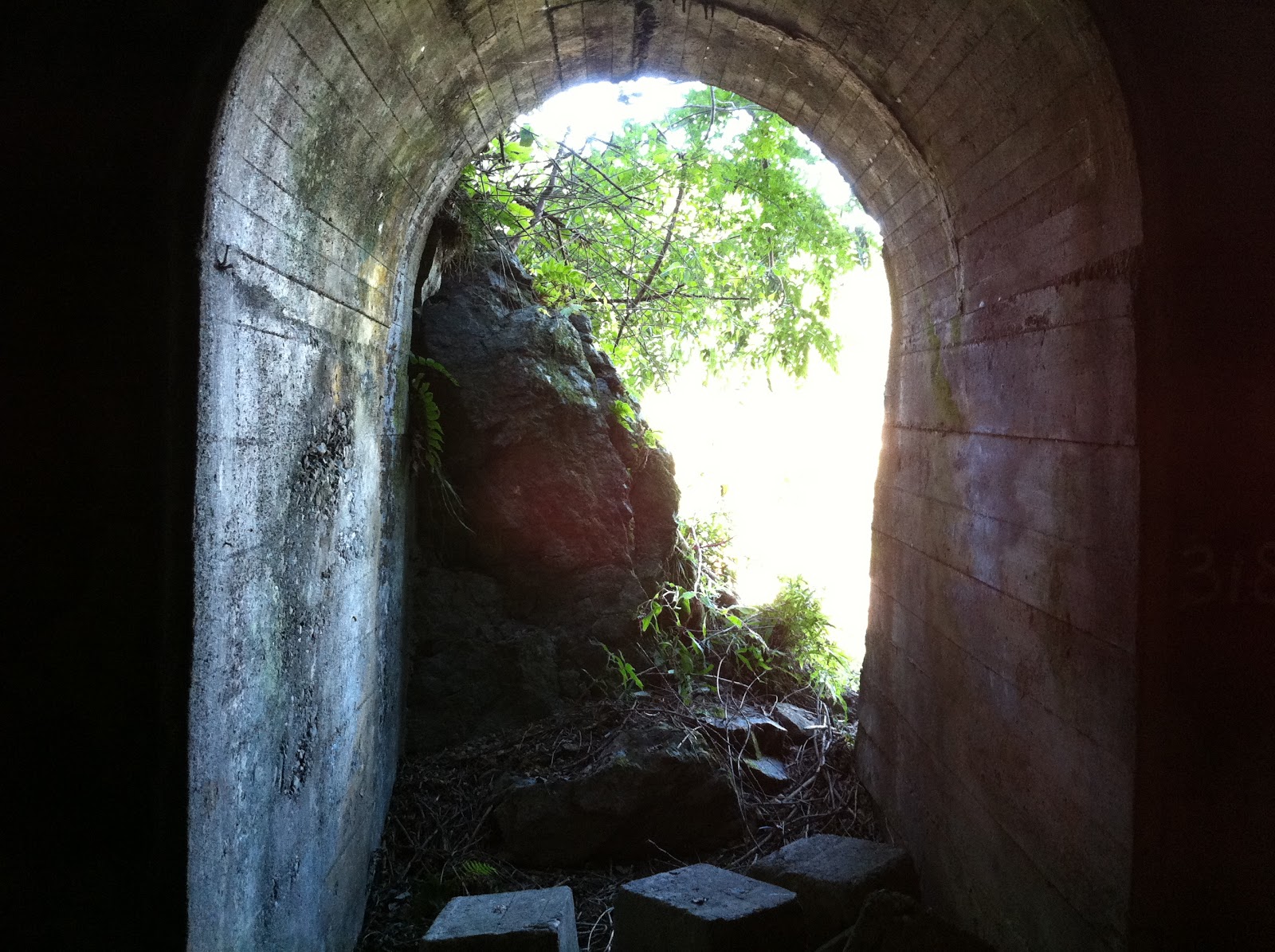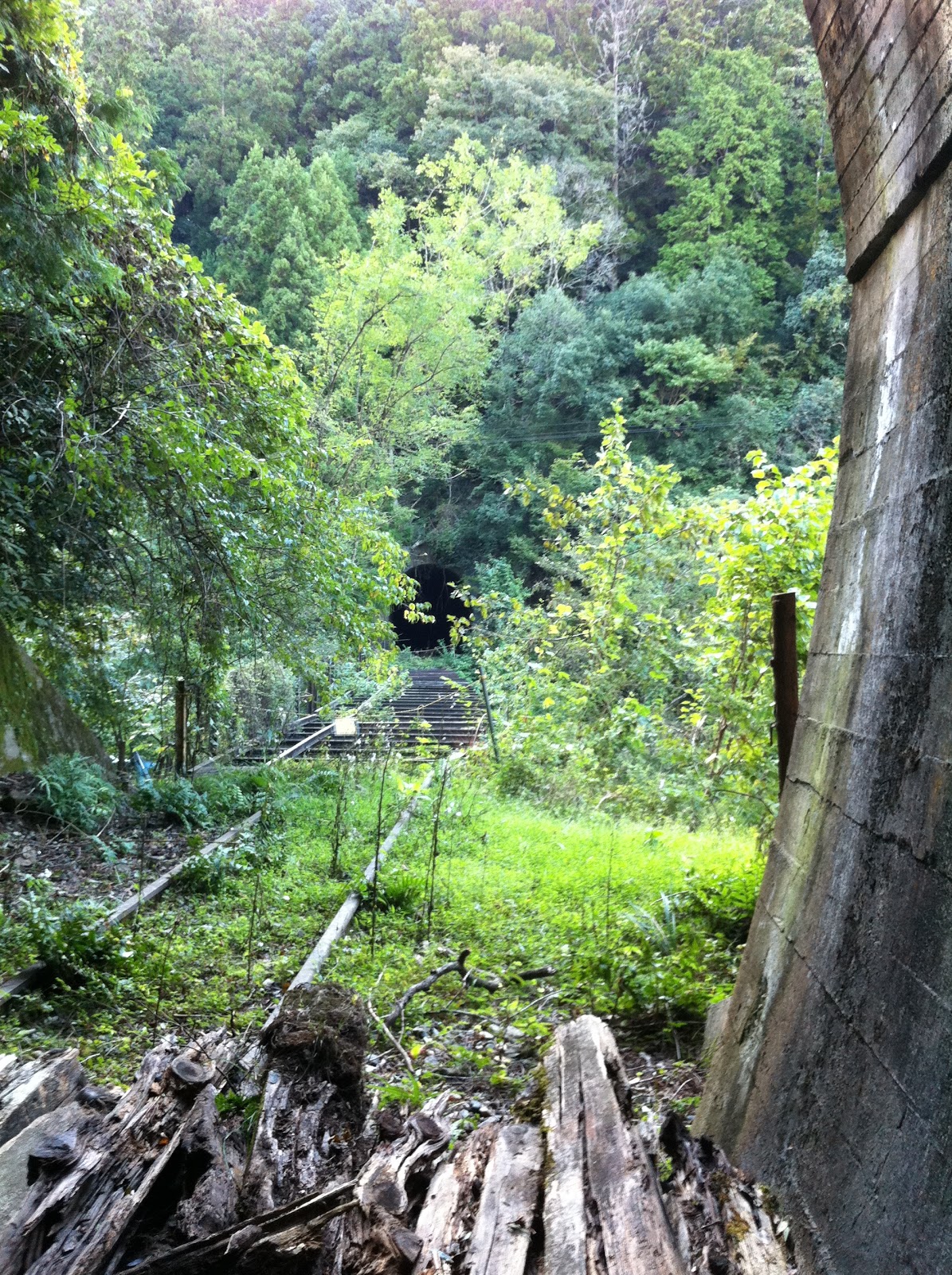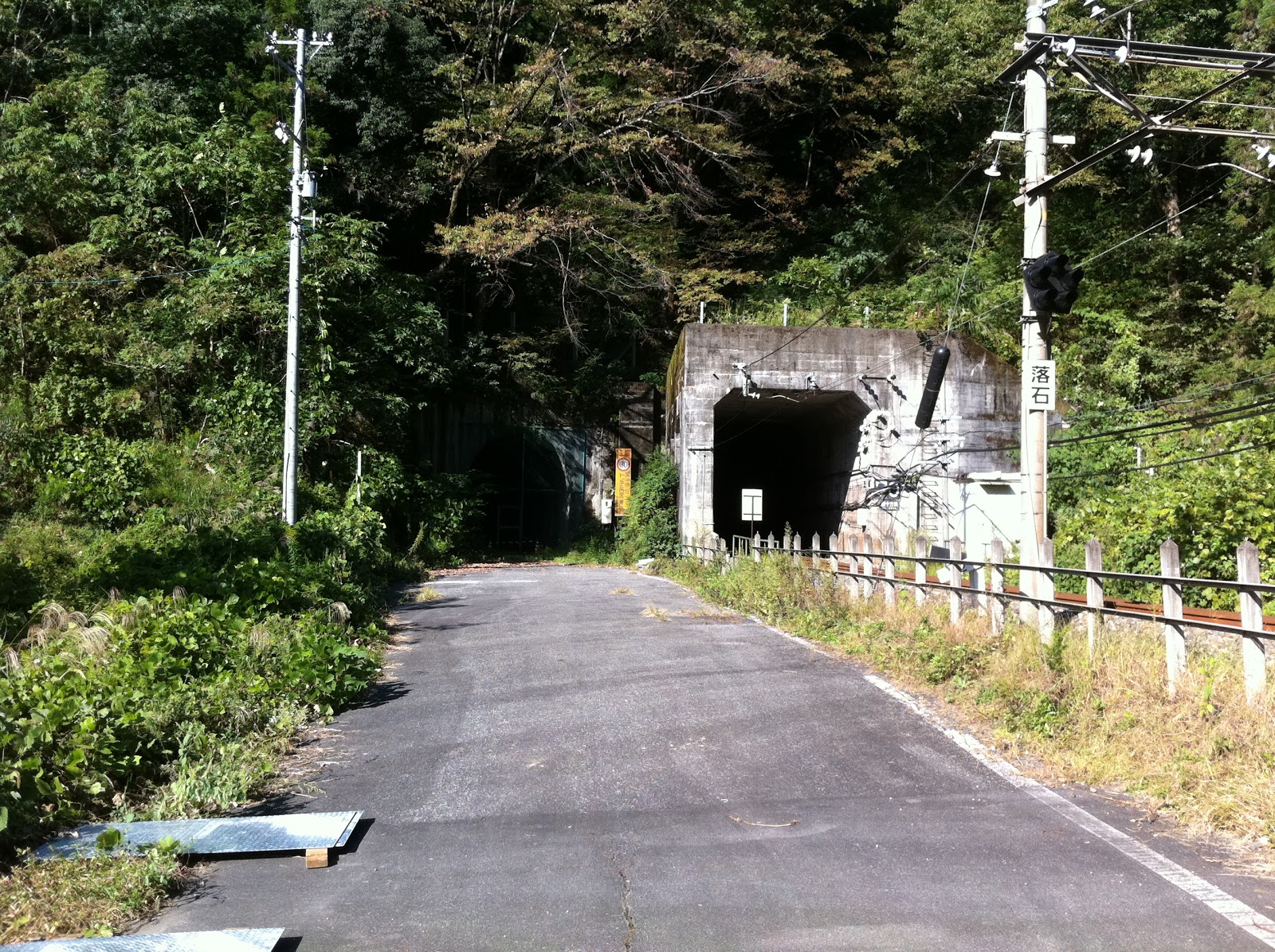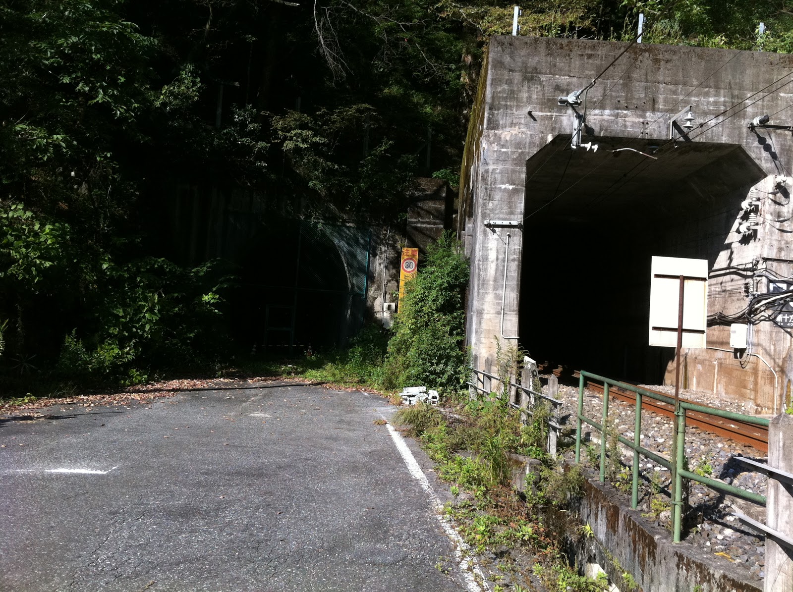 そして左右の現役トンネルの間に挟まれて存在するのが、この廃トンネルです。最初は電車用のトンネルとして使われていましたが廃止され、一旦国道になった後、改めて廃止されました。