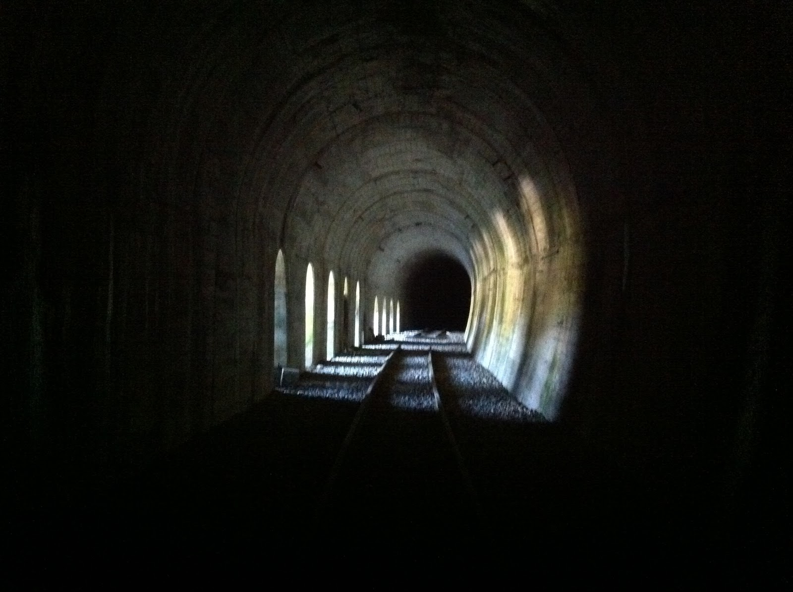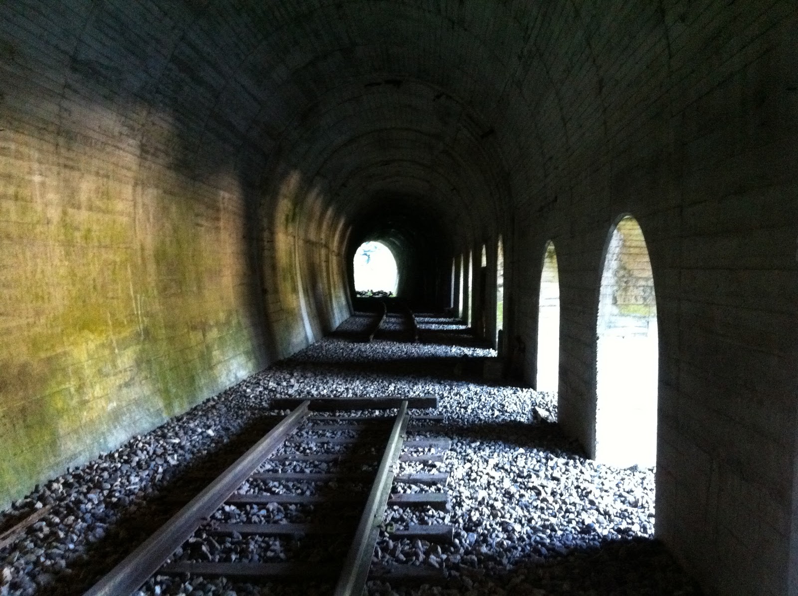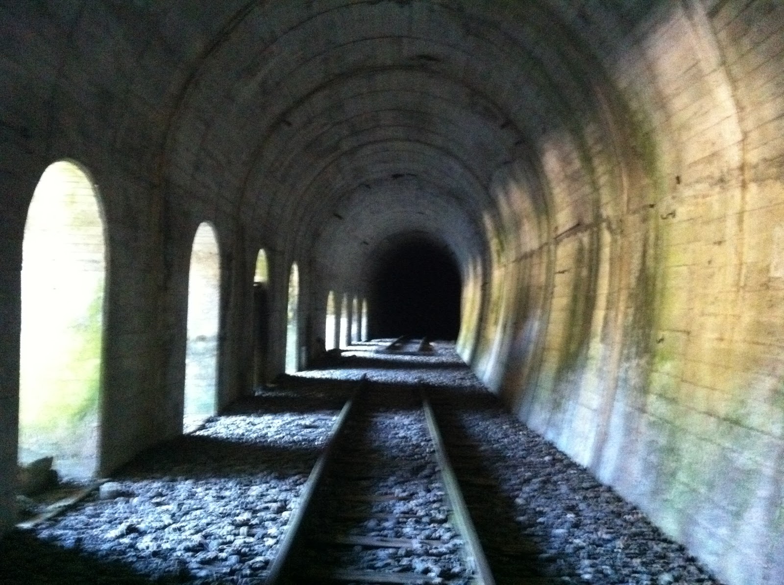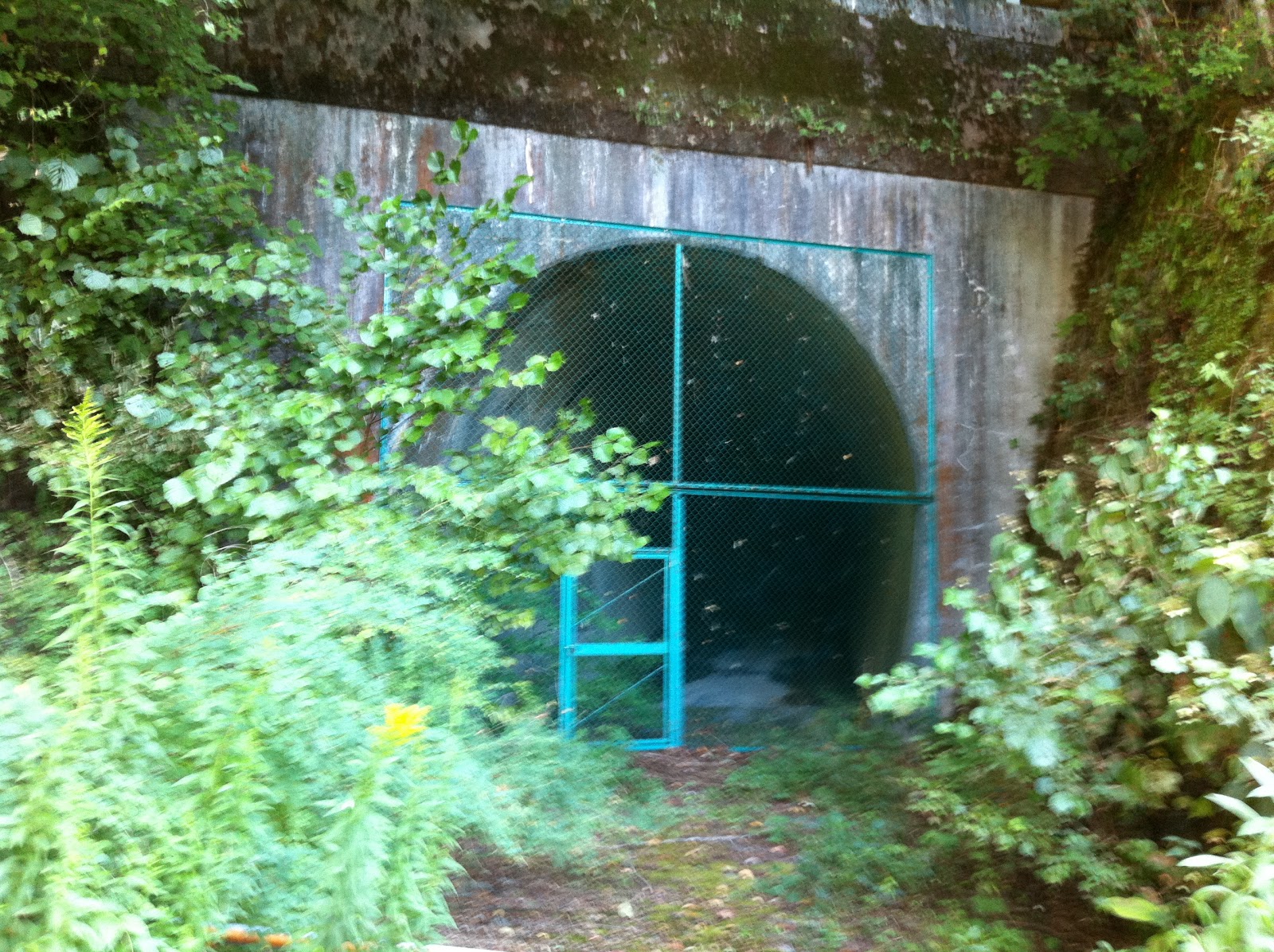 そして左右の現役トンネルの間に挟まれて存在するのが、この廃トンネルです。最初は電車用のトンネルとして使われていましたが廃止され、一旦国道になった後、改めて廃止されました。