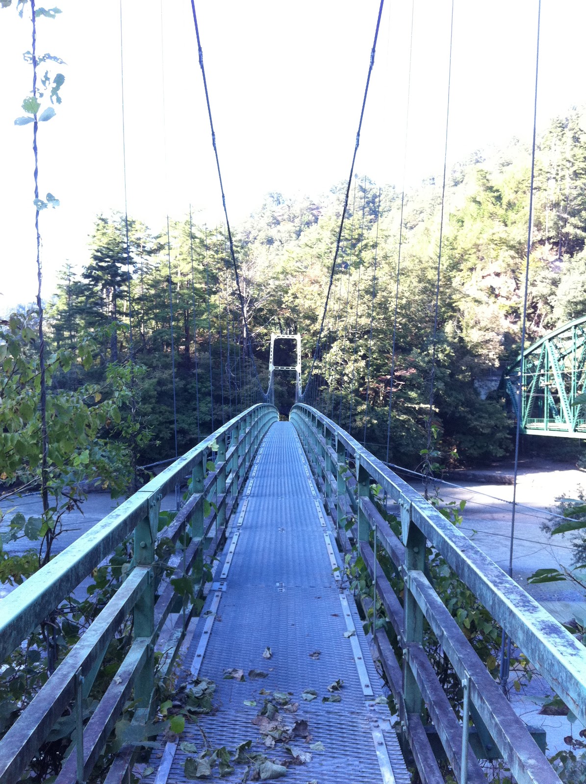 右が現役飯田線の橋。左が吊り橋。ん?じゃあ昔の飯田線の橋は…?