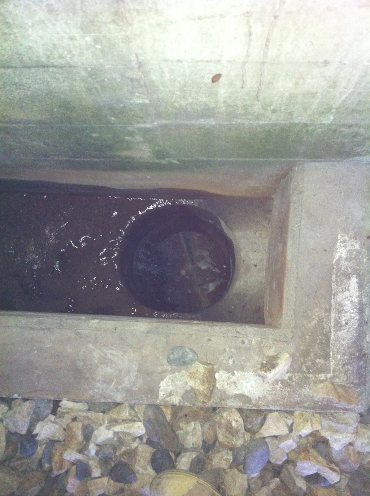 常に水がジャバジャバしてます。これは水の排水口。暗いので危ない。携帯落としたら死にます。