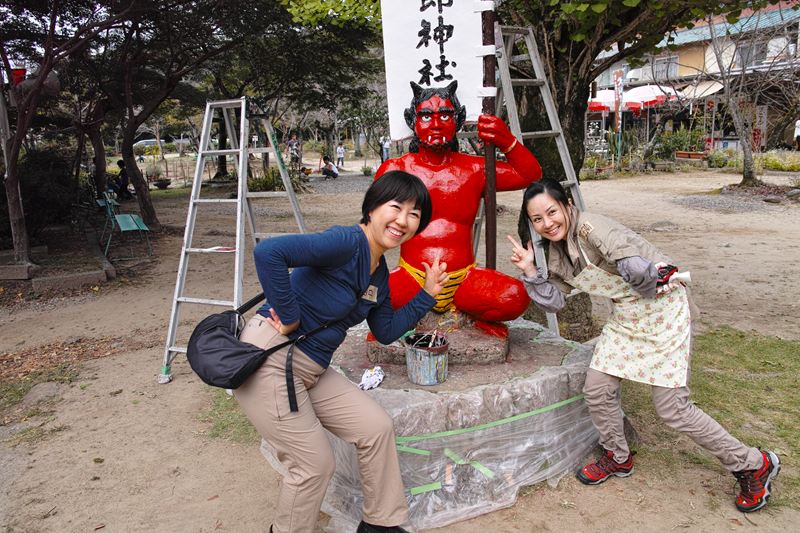 @fuck_okaさんと僕もこの”桃太郎神社” の文字塗りに挑戦。