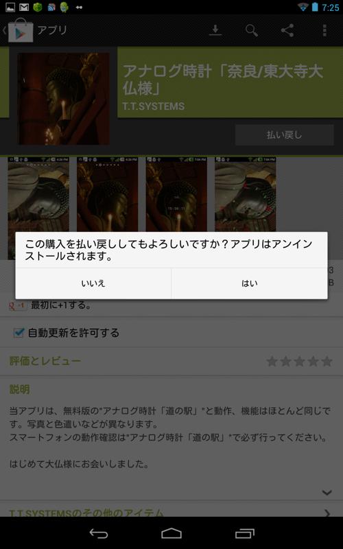 Android端末だとアプリを購入したあと15分以内だと返金してもらえる。すごい。