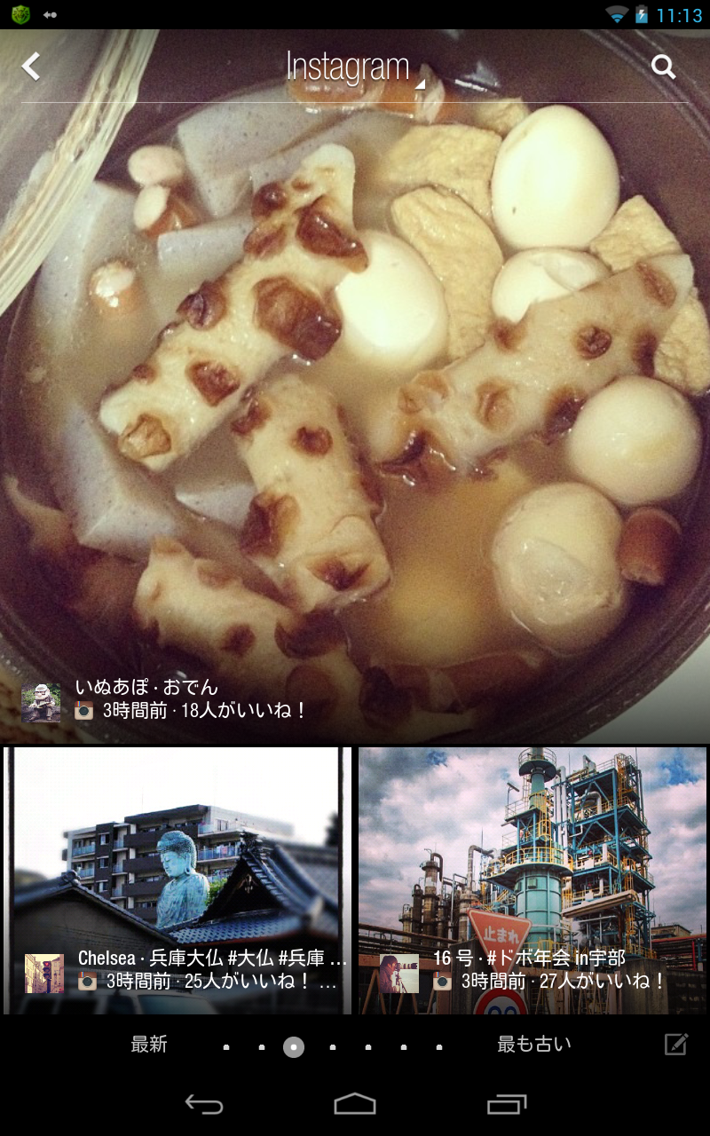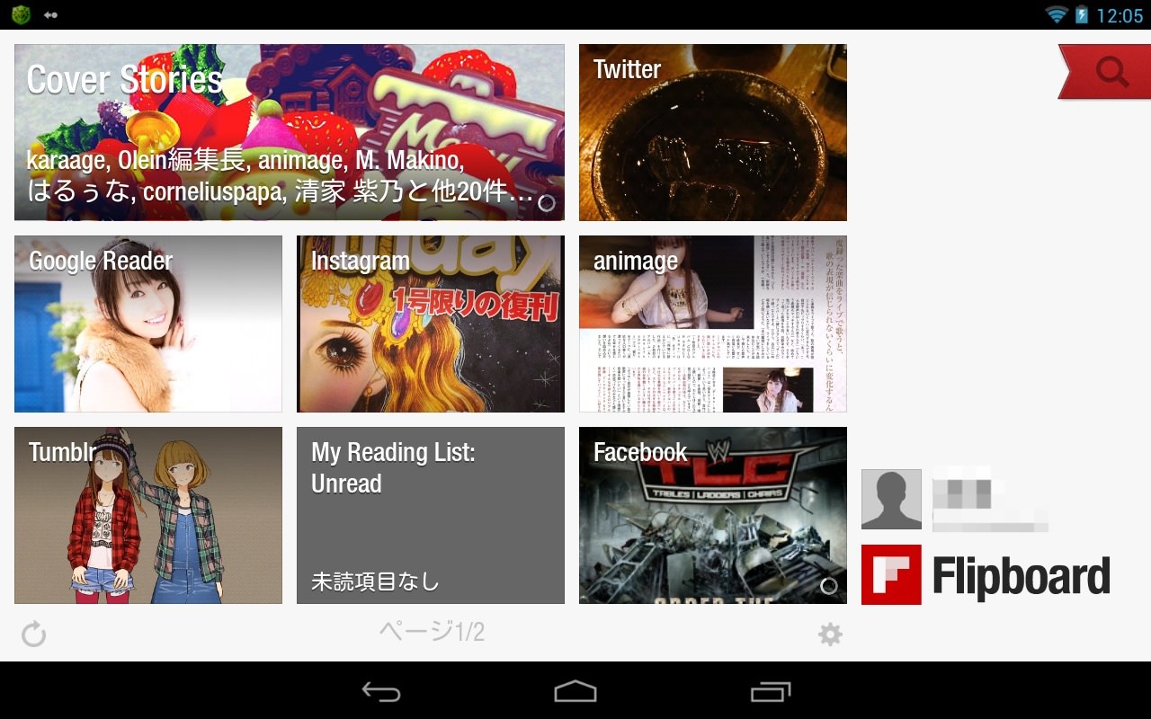 nexus7vsiPad mini論争で、「Androidアプリの多くは7インチの画面に最適化されていない」ってことでその例にもよく挙がっていたFlipboardですが、今回のアップデートで最適化されました。