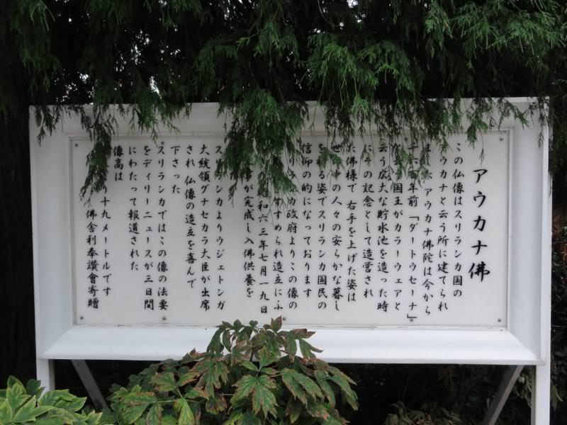 名前はアウカナ仏というみたいです。見た目も名前も東南アジアチックなんですが、それもそのはずスリランカ製の由緒正しき大仏なんですね。昭和63年7月19日に完成したようですが、僕の生年月日にとても近くて親近感を覚えます。