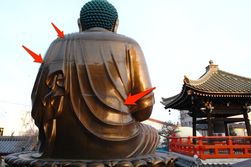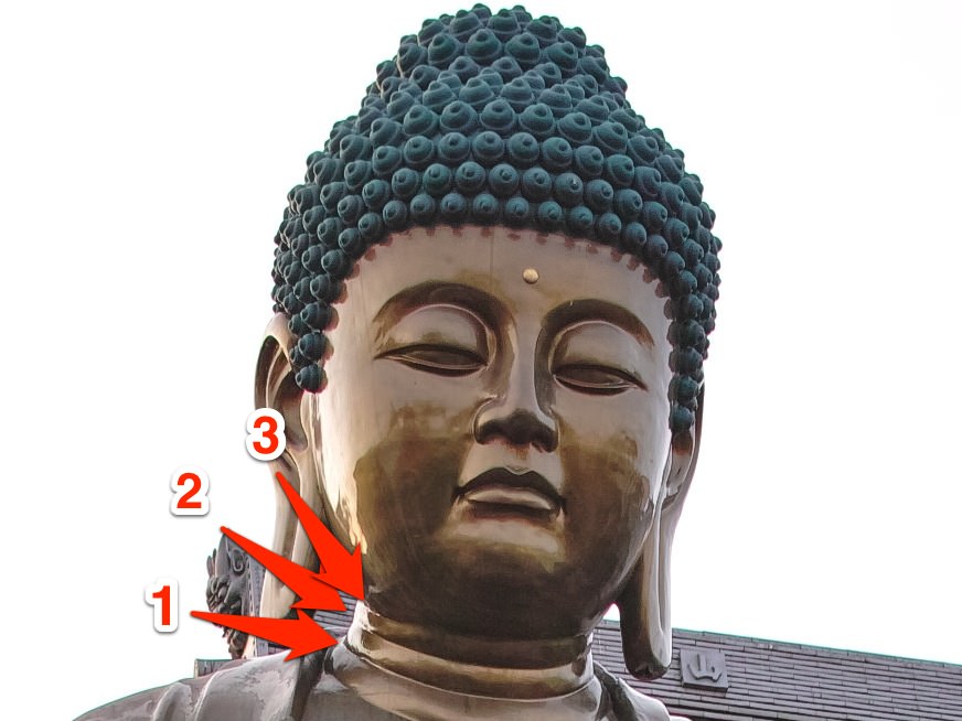 大仏の首には3本の線があり、これを”三道”といいます。別に大仏だけじゃなくて観音様とかにもあるんだけど。(もっと言うと”大仏”と言ってもそのモデルにはいろんな人がいるんですがそれはまた追々…)