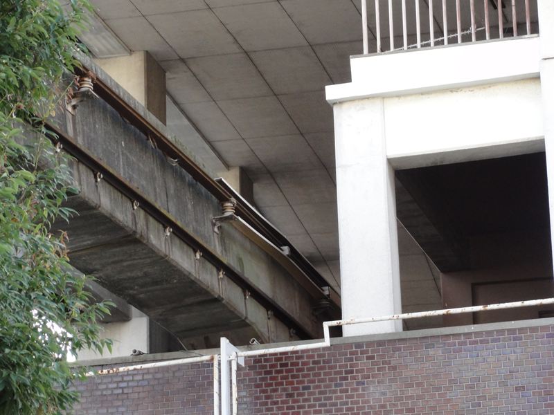このビルには居住区もあるんですが、このモノレールが走っていた当時は相当な人気だったそうです。