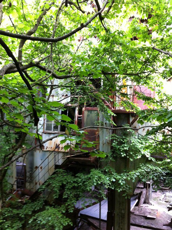 山を削って建てた工場が、再び山に取り込まれようとしています。恐るべし自然の生命力。
