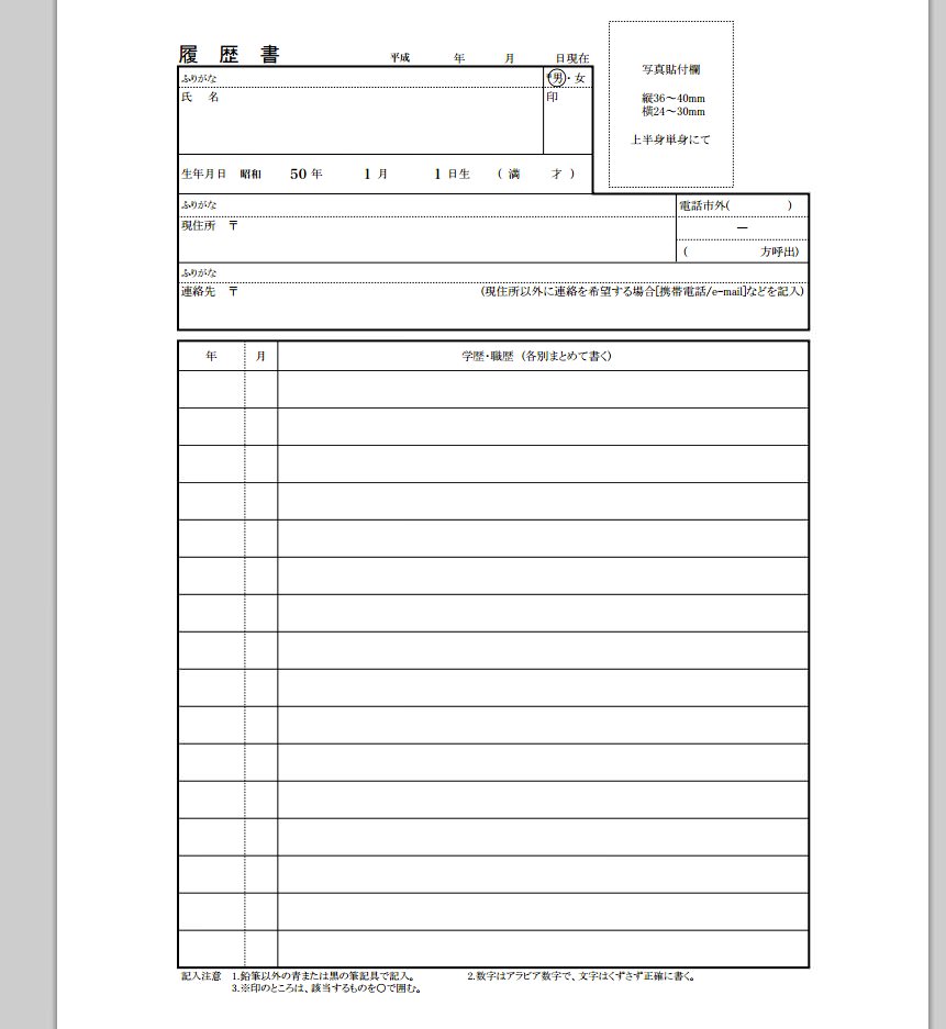 やっぱり履歴書は手書きで作りたい!という人は何も入力しなければいいんです。