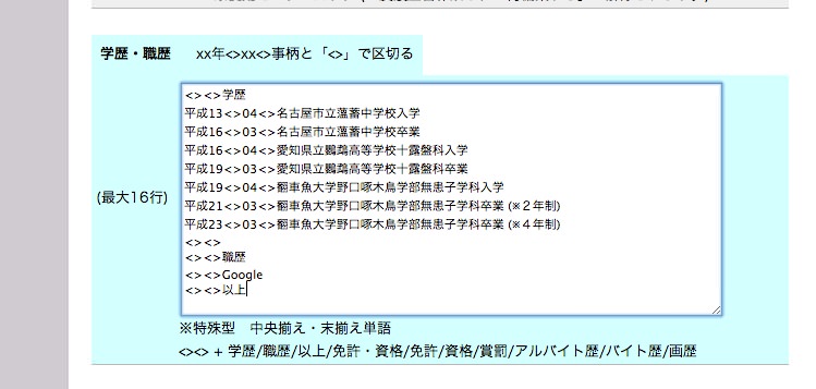 生年月日を入力すると学歴欄が自動で入学、卒業日程を計算してくれるのでありがたいです。