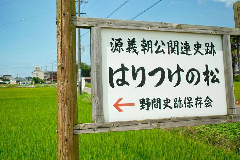 野間大坊は源義朝のお墓で、はりつけの松は義朝を殺した犯人の処刑場です。