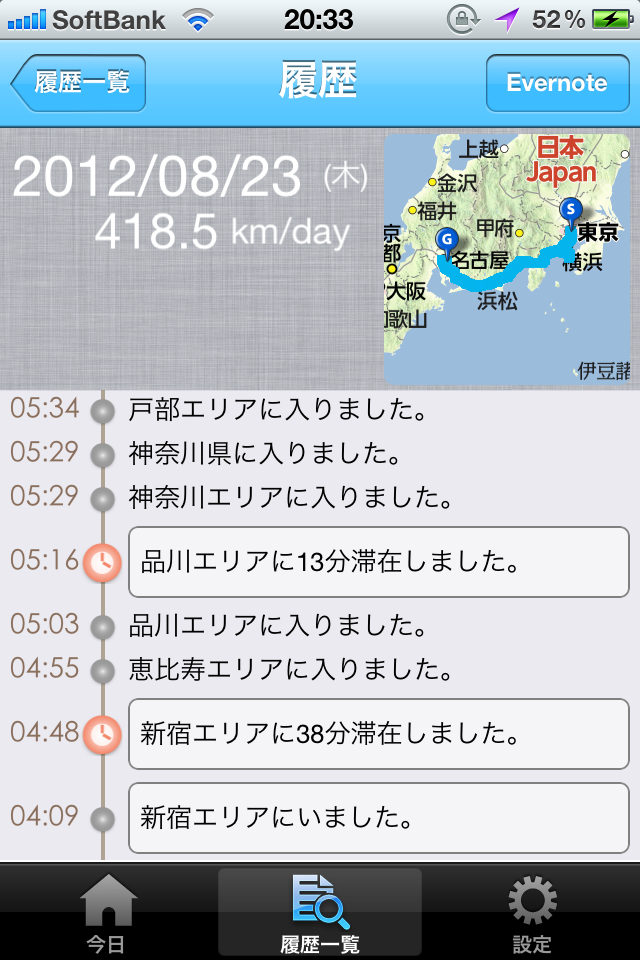一方「僕の来た道」は一度アプリは今のところ不満も全くなく、まさに僕の行動をログとして保存してくれる素晴らしいアプリでした。