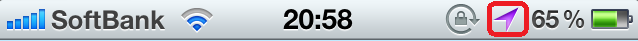 この矢印が表示されている間は位置情報取得中ってことなんだけど、これが消えなくなるバグがあります。