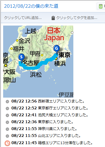 こんな感じで残ります。ずーっと同じエリアにいると滞在しましたって言われる。