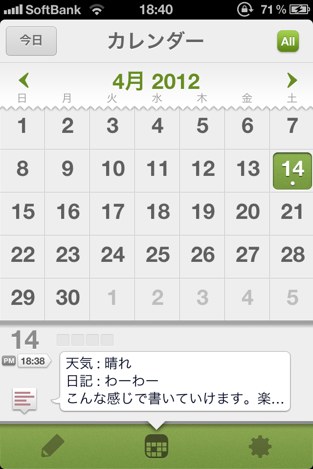そしてえばろぐで書いたノートを『SnapCal』で同期してやれば、EvernoteのノートがSnapCalのカレンダー上で表示されるというわけです。