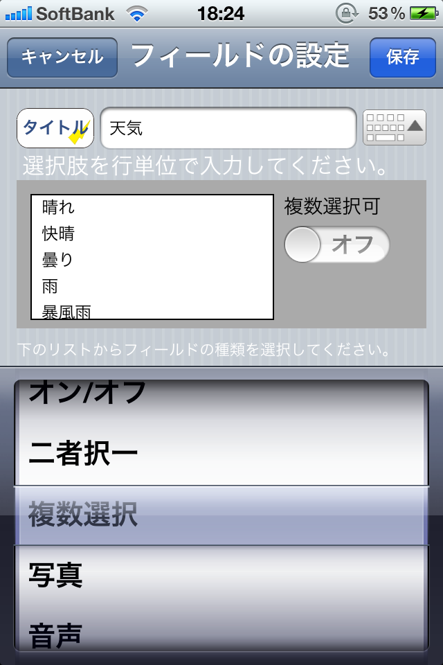 複数選択可の項目はオフにした方が早くていいです。