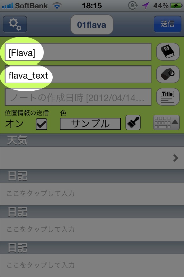 送り先ノートを[Flava]にして、タグにflava_textとしてやればいい。画像を添付したい場合はタグをflava_photoに。それ以外は下記のURL参照。