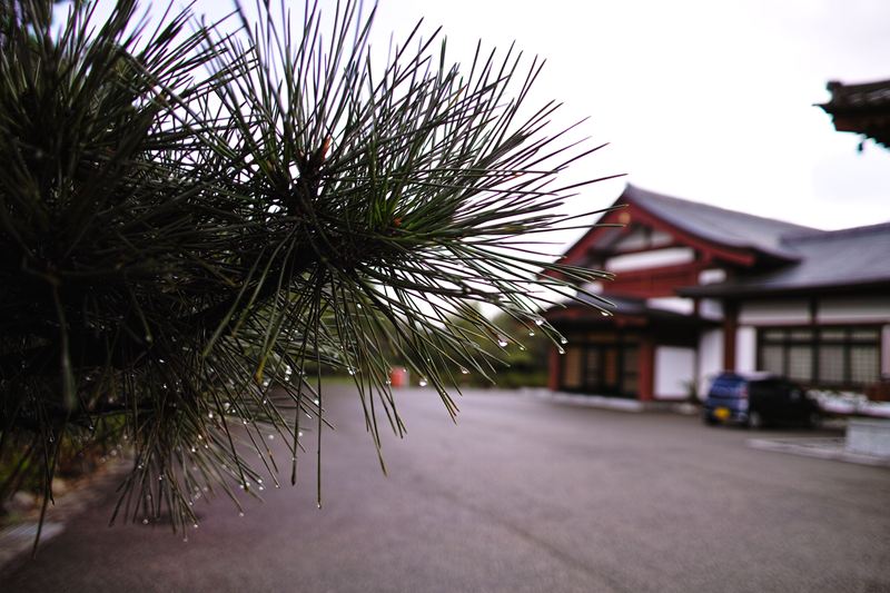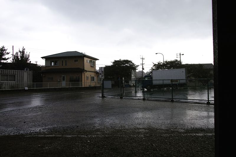 晴れ間が見えていたのに、五色園についたときには土砂降り&雷鳴…。休憩所に避難して外を見る。