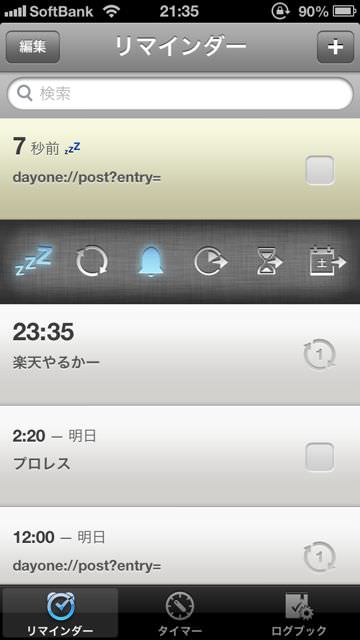 っていうか日本語表示だったんですね。Alarmedは英語表記なのでその辺気になる人はDueのがいいですね。iPhone5に対応しているところもありがたいです。