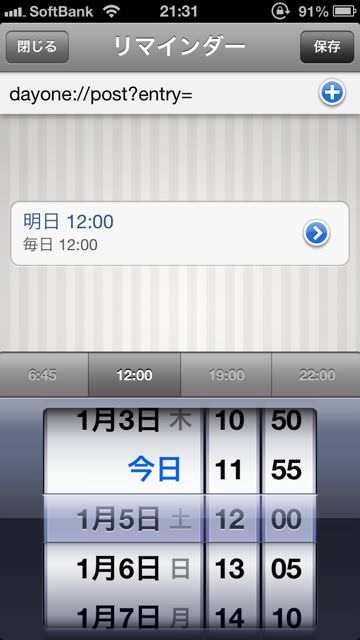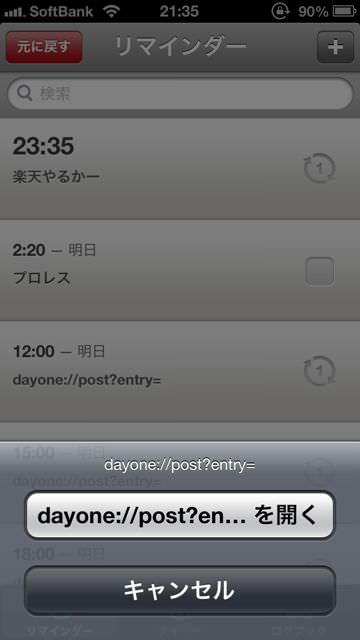 日記アプリDayOneのURLスキームを使ってDueから起動させてみます。