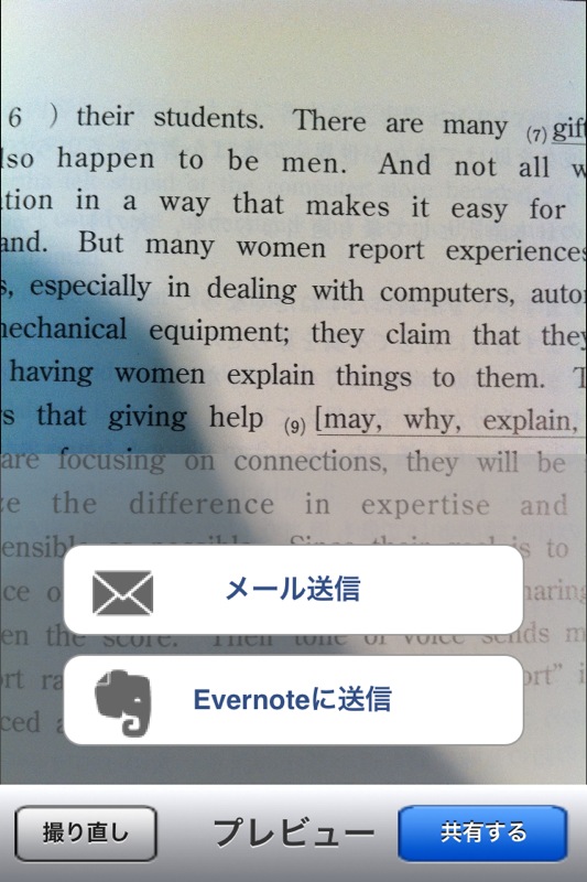 本とかをこのアプリで撮影すると、書かれている文字をテキストに起こしてEvernoteに保存してくれるというすげぇアプリです。