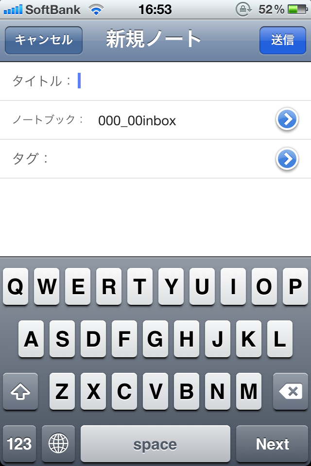 タイトルとノートブック、タグ、本文等を記入して送信。