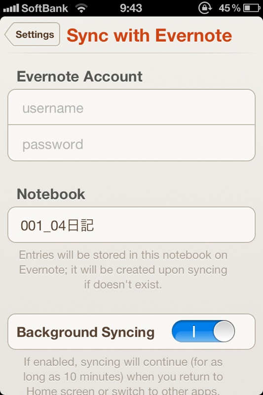 ノートブックの指定ができるのが嬉しい。しかもバックグラウンド同期だと!?これはかなり嬉しい。日記書いたら同期ボタン押してBB2Cとか見ながら放っておいても大丈夫ということか。