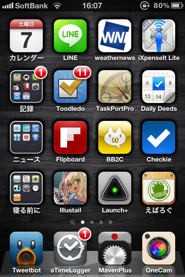 先月のホーム画面はこちら:もうすぐiPhone4の端末代を払い終えそうな私の現在のホーム画面