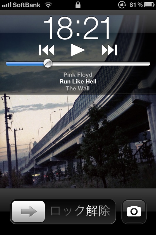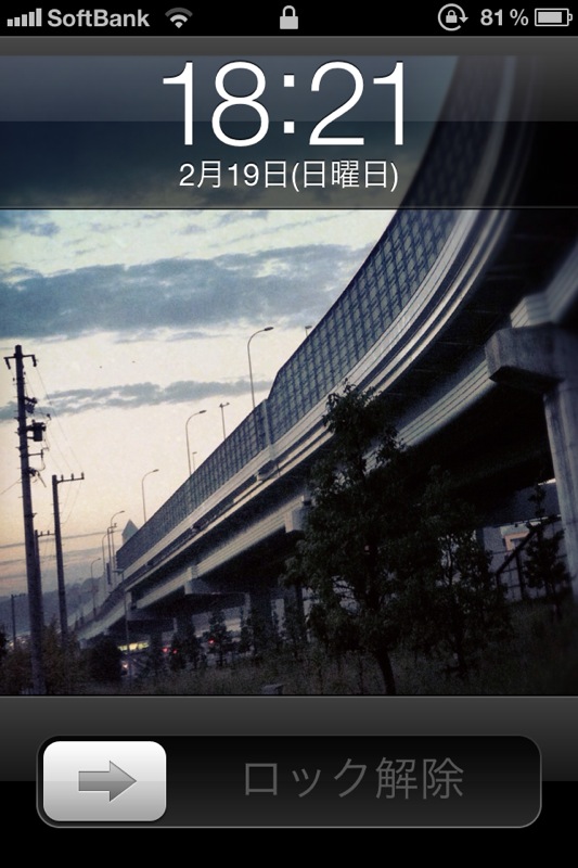 これは私のロック画面です。この状態でホームボタンを2回押すと…