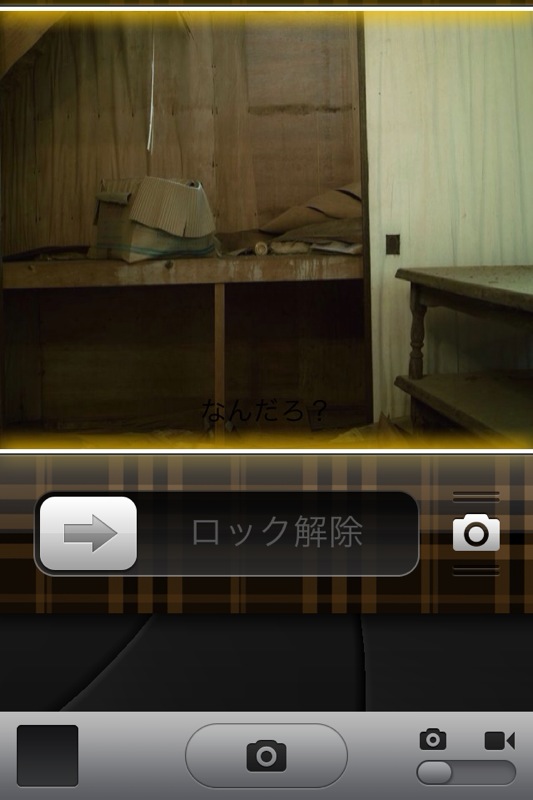 iOS5.1(だっけ?)以降から写真のようにロック画面からカメラの起動が可能になりました。やりかたは右下のカメラボタンを上になぞるだけです。