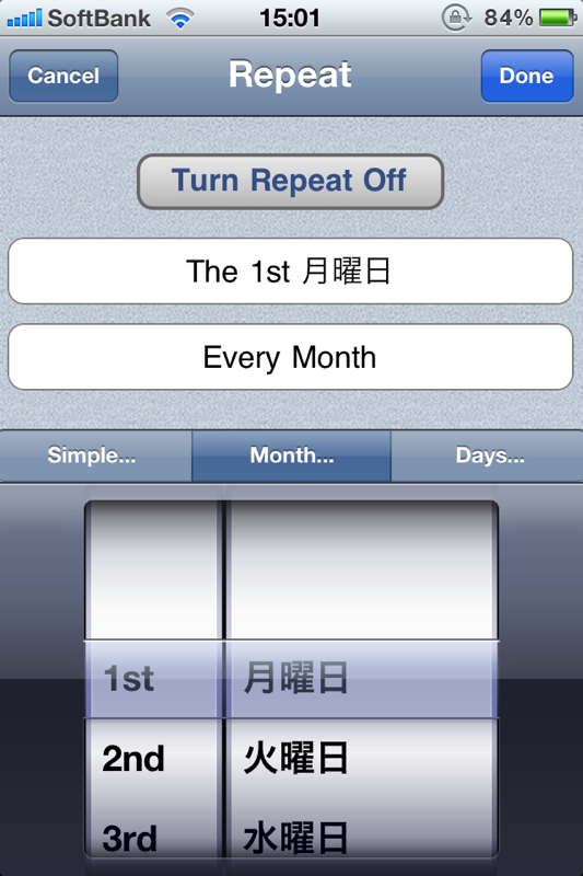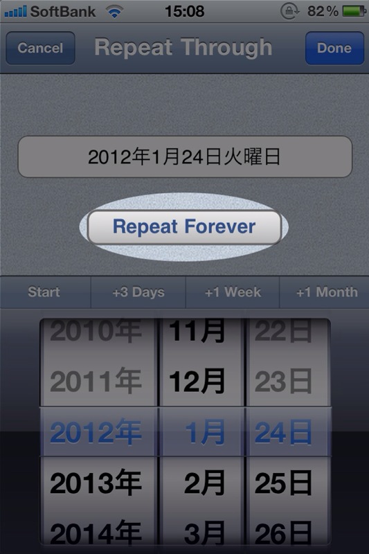 リピートも設定できます。永遠にリピートされるのか、1ヶ月間だけなのかとか。