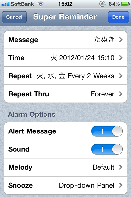 でもよくわからん。逆に予定時間の前に予備アラームを鳴らすことも可能。アラーム鳴らしまくりでもうちょーうるさい。