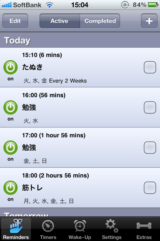 終わったらチェックをつけましょう。ただ残念なのが、タスクを完了できなかった場合でも、チェックをつけないと次から通知してくれません。