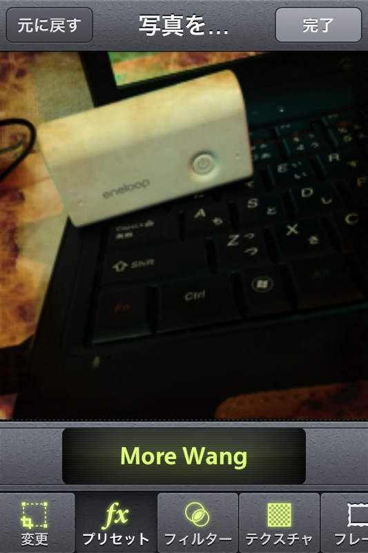 プリセット(なんか写真に与える効果)とかいうものを変更してみたり。