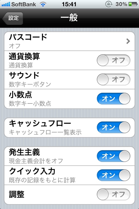 写真一番下の「小数点」は必ずオンにしてください。金額入力の際におかしくなります。