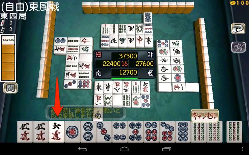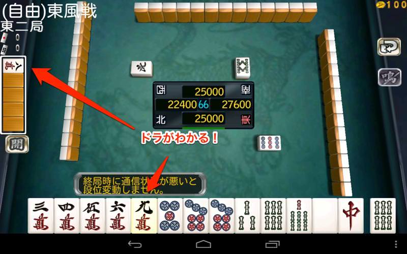 対局画面はこんな感じ。ドラが常に光っていてくれるので注意しながら戦えます。