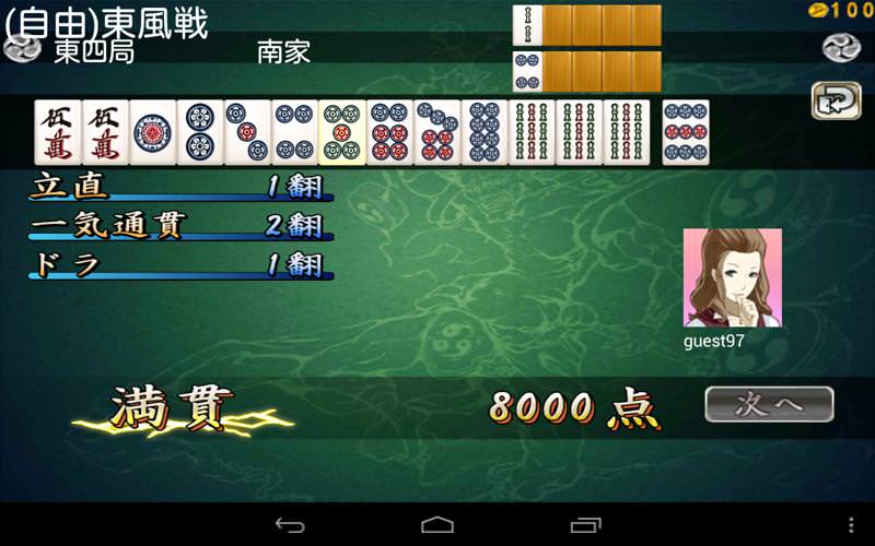 立直、一気通貫、ドラ!満貫8000点でした。よかったね。