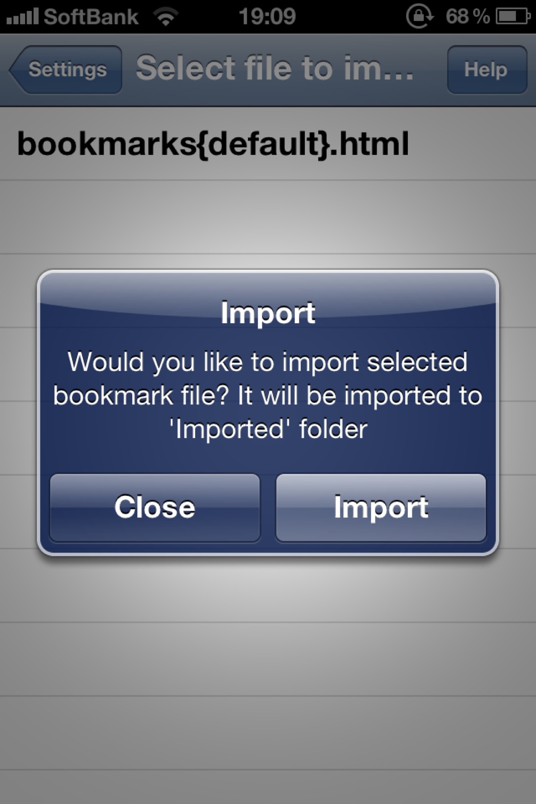 インポートされたファイルを押すと、ブックマークのインポートが始まります。