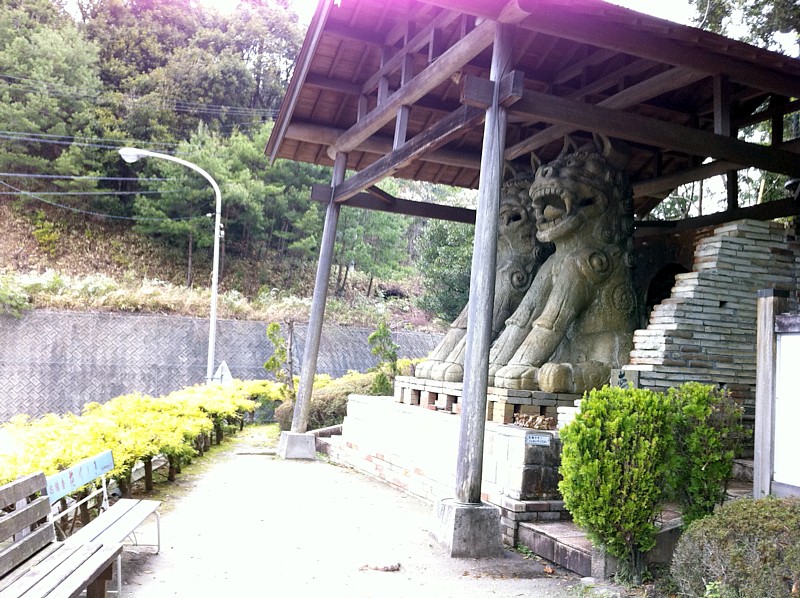 あたり一面真っ暗な中、突然こんな派手な電飾と、ライトアップされる巨像の姿に興奮しつつもやばいところに来てしまったのではないか?とドキドキしながら写真に収めたのですが、いかんせん夜中であり何が何だかよくわからん。というわけで後日明るいうちに、「こま犬の里」と呼ばれているこの謎の施設にやって来たわけです。