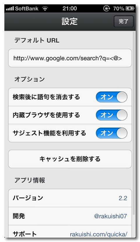 一方Quickaは、アプリが起動すると共にキーボードが表示されるので即座にキーワードを入力することができます。