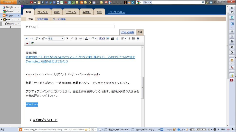 で、そこに具体的に何をしたのか、というスクリーンショットを合わせたら面白そうだな~と思い立ったわけです。もちろんPCのスクリーンショットなのでPCでの作業限定ですが、家にいるときは大体PCの前なので…。