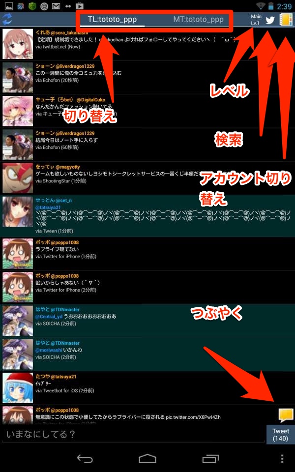 ちょっとごちゃごちゃしてますが、まじめに使う分にもDMが見れないことを除くと結構いいし、Androidユーザーには普通におすすめできるアプリでもあります。