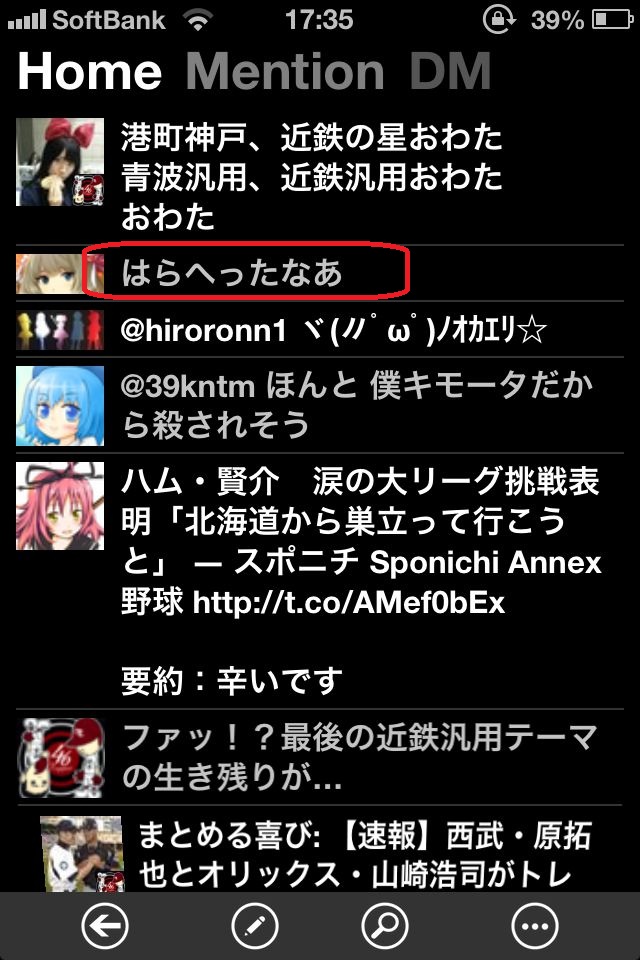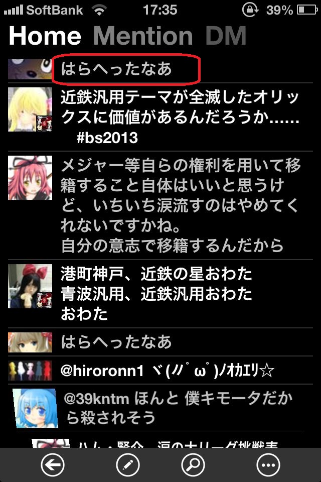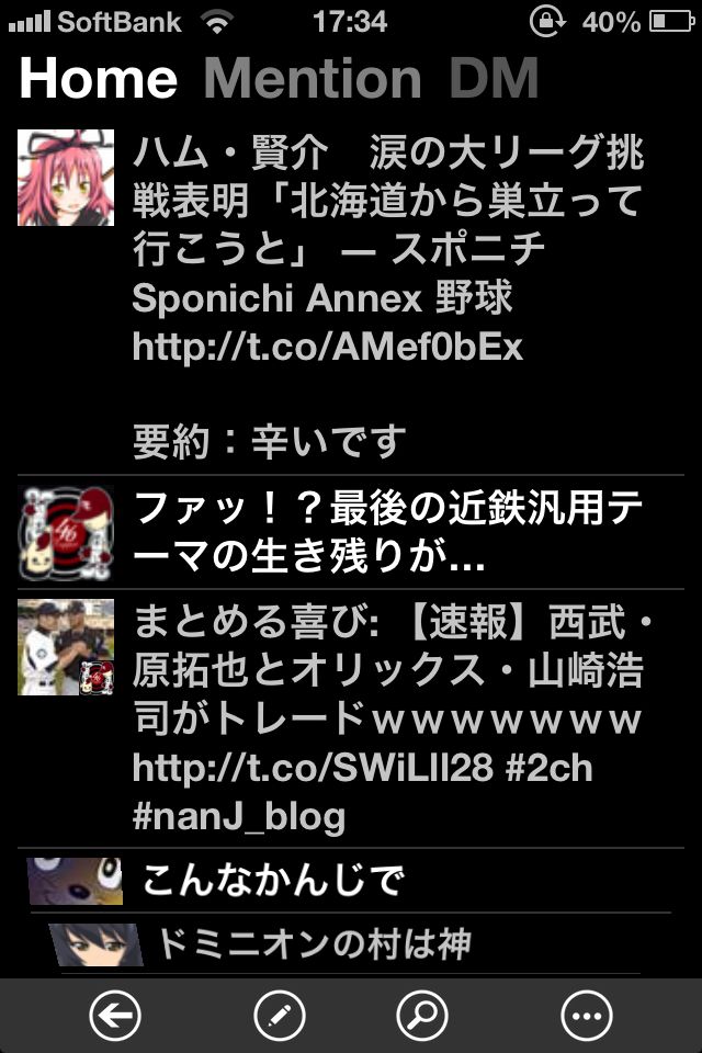 見た目はこんな感じで。通常TL、メンション、DMの切り替えは左右スワイプでできて気持ちがいい。