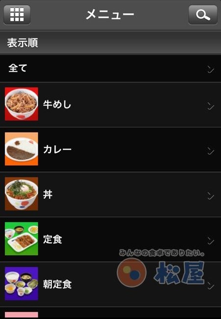 松屋のメニューが網羅されています。これは普通に便利だ。