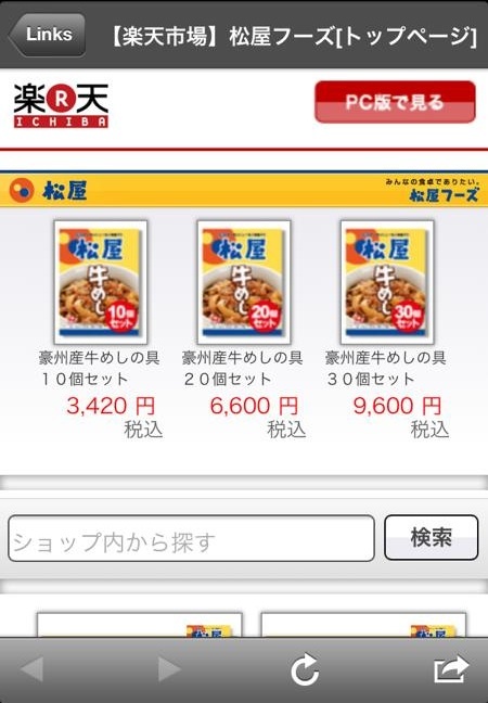 …ここでふと恐ろしい考えが頭をよぎり、楽天市場のトップから『吉野家』と打ち込んで検索すると…